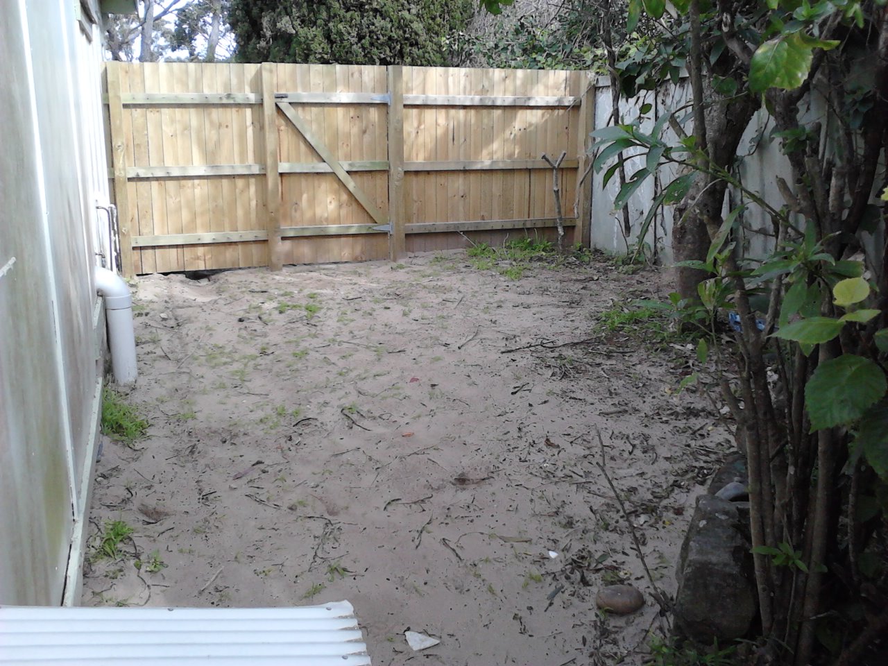 The whole planting was deep – watered, then the area was thickly mulched…….the mulching necessitated the gate being re-hung to open out instead of in.