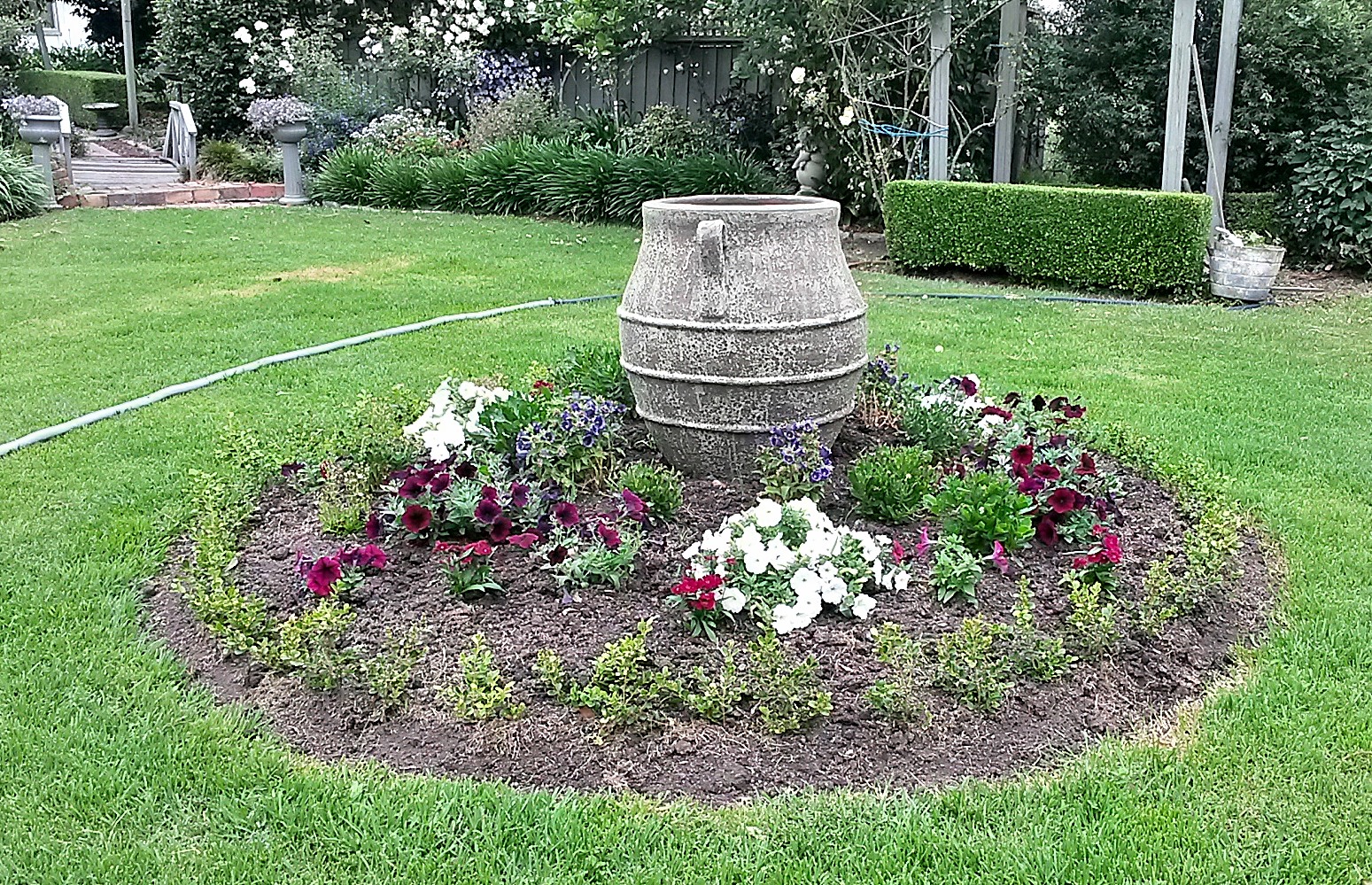 this is a new hedge in the making, buxus microphylla, will grow it to about 350mm high to enclose the pot and garden bed